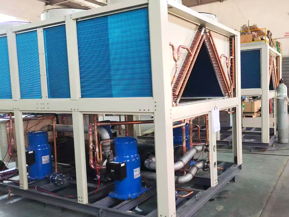Чиллеры с воздушным охлаждением — это холодильные устройства, которые рассеивают тепло через воздух и широко используются в системах кондиционирования воздуха в коммерческих зданиях, промышленных предприятиях и общественных учреждениях. В качестве охлаждающей среды они используют воздух, при этом вентилятор втягивает окружающий воздух в конденсатор, тем самым охлаждая и циркулируя хладагент. Обычно они включают в себя основные компоненты, такие как компрессор, испаритель, конденсатор с воздушным охлаждением, расширительный клапан и систему управления.